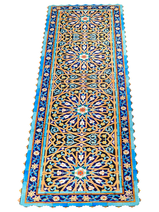 Camino de mesa inspirado en uno de los paneles de azulejos persas que decoran los muros de la antigua Mezquita del Viernes de Yazd.