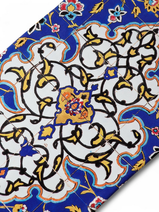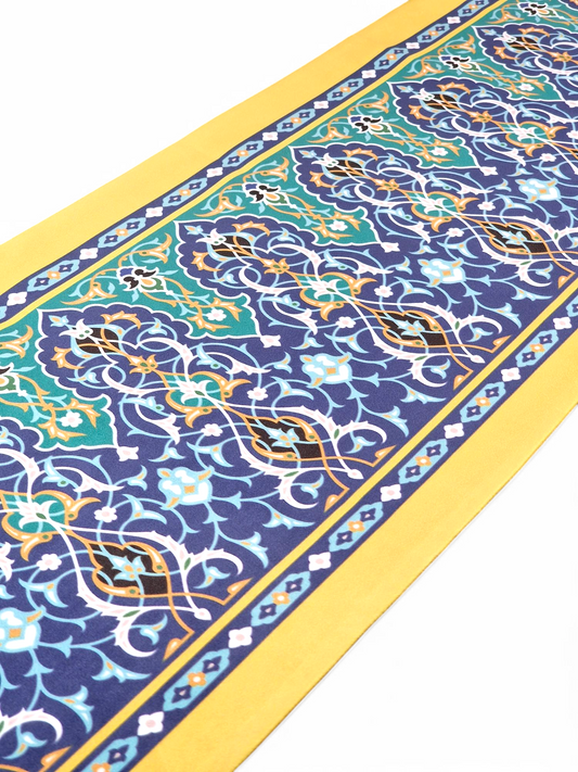 Camino de mesa inspirado en uno de los paneles de azulejos florales persas y de diseño islimi que decoran la Gran Mezquita de Yazd.